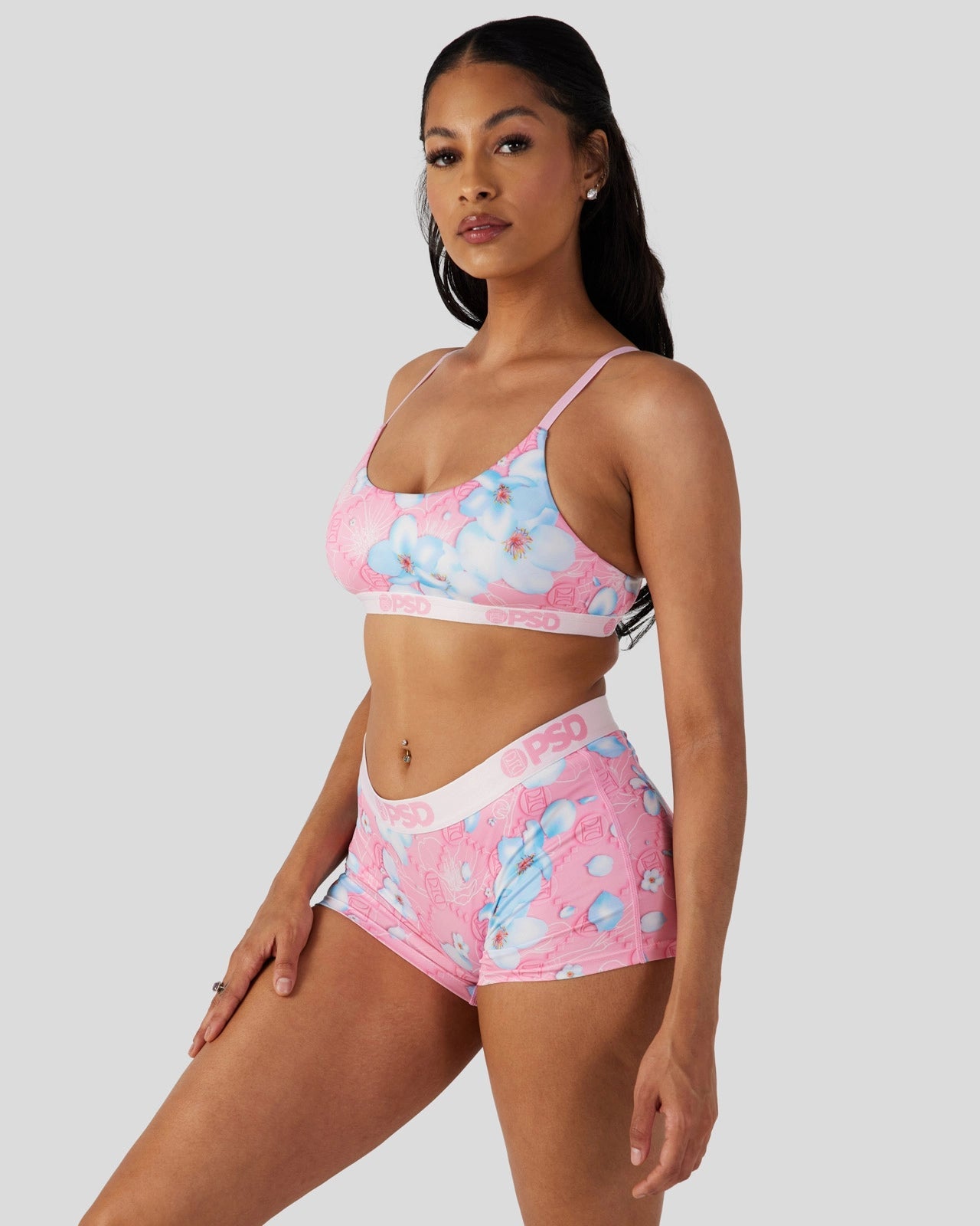 Now blooming for spring: the Blossom Blues Scoop Bralette. Featuring blue cherry blossoms over a pink and white floral design. fill your drawer with the kind of flowers that’ll last forever. Made of our silky poly blend. the Scoop Bralette almost feels like you’re not wearing a bra at all. It’s fully lined and features include adjustable straps. a cute scoop neckline. and a soft microfiber band that won’t ride or rub.