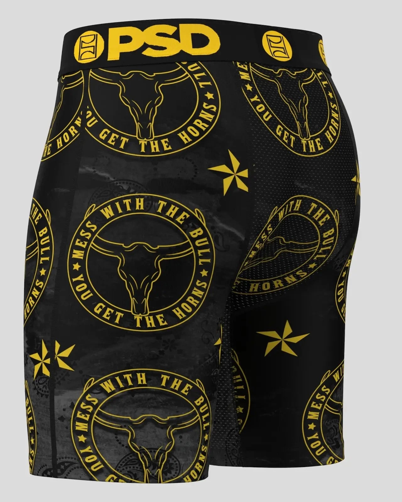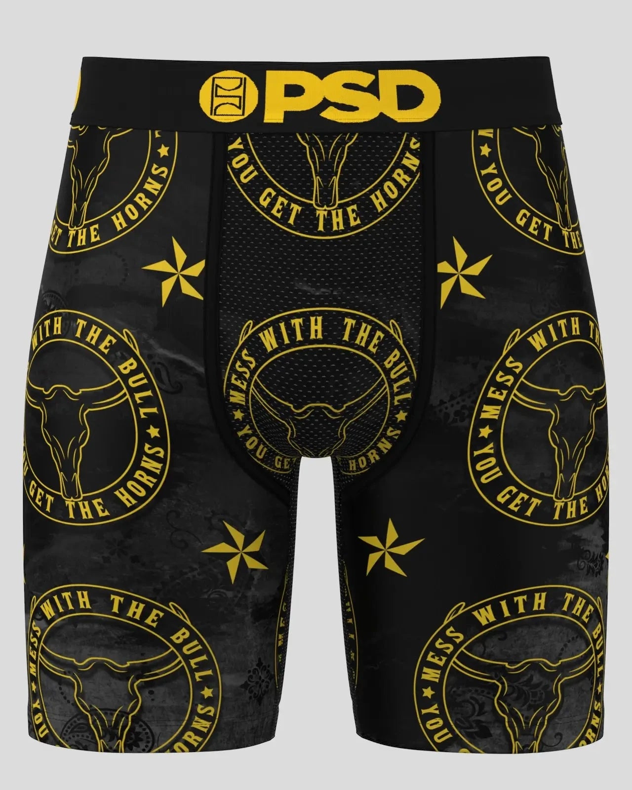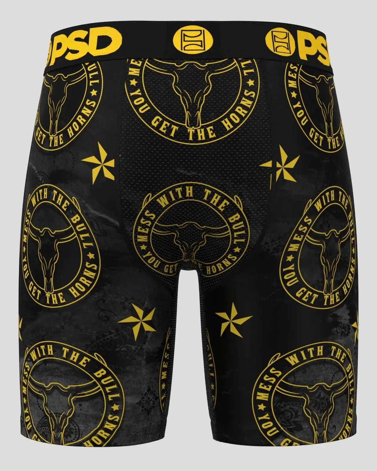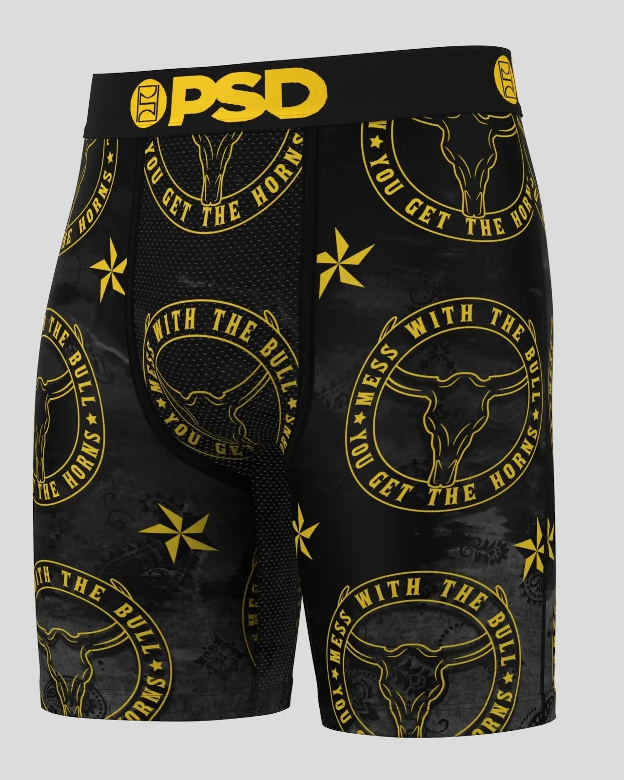 Mess with the bull. get the horns. The Don’t Mess briefs include our ultra-comfortable Signature WaistBand. a breathable MicroMesh pouch. and four-way stretch. The PSD 7 Standard Length Briefs won’t roll or ride and were built for everything. from everyday wear to your toughest workouts.
