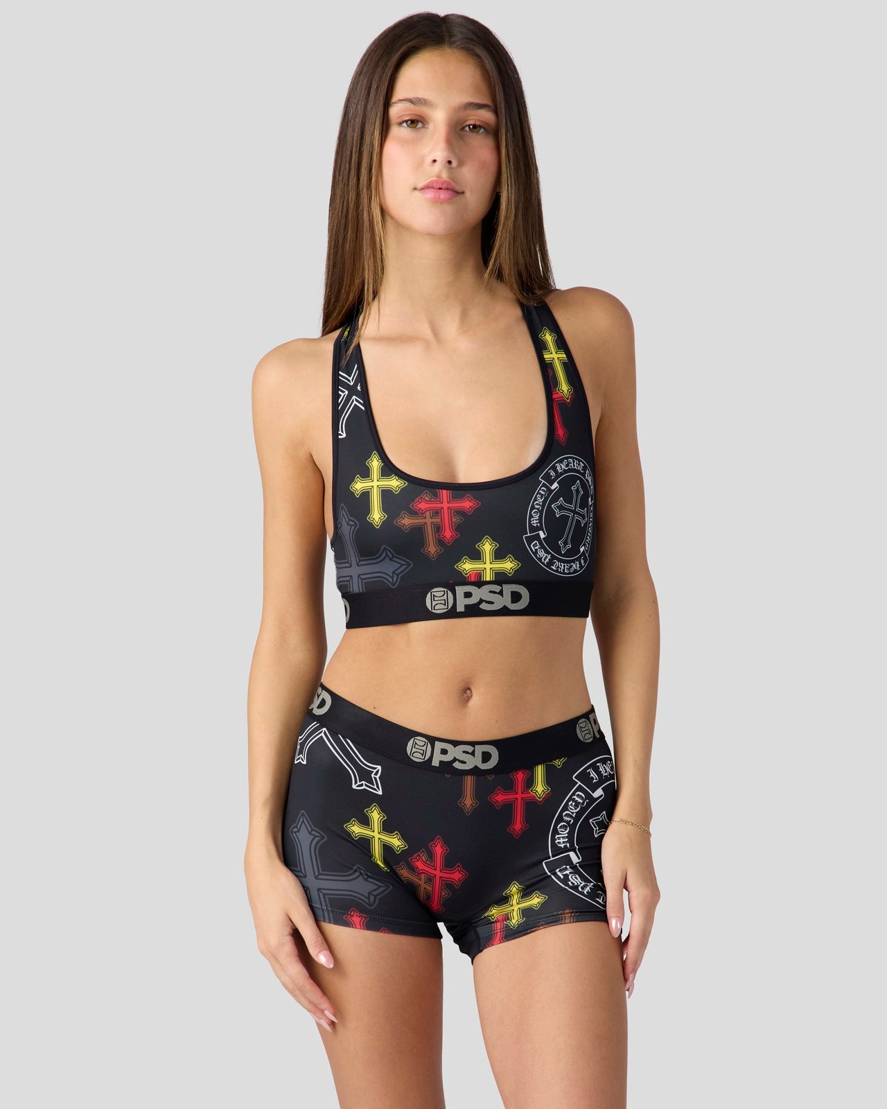 The Heart PSD Sports Bra is made from a silky poly blend and is breathable yet slightly compressive. bringing you the comfort and support you need for everything you get into.