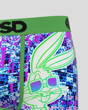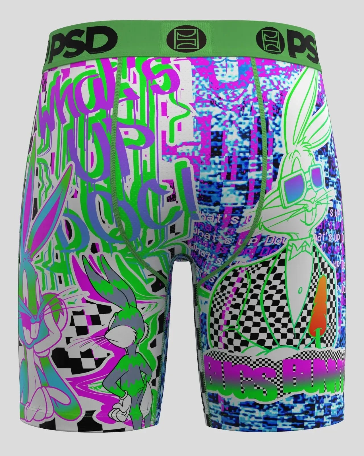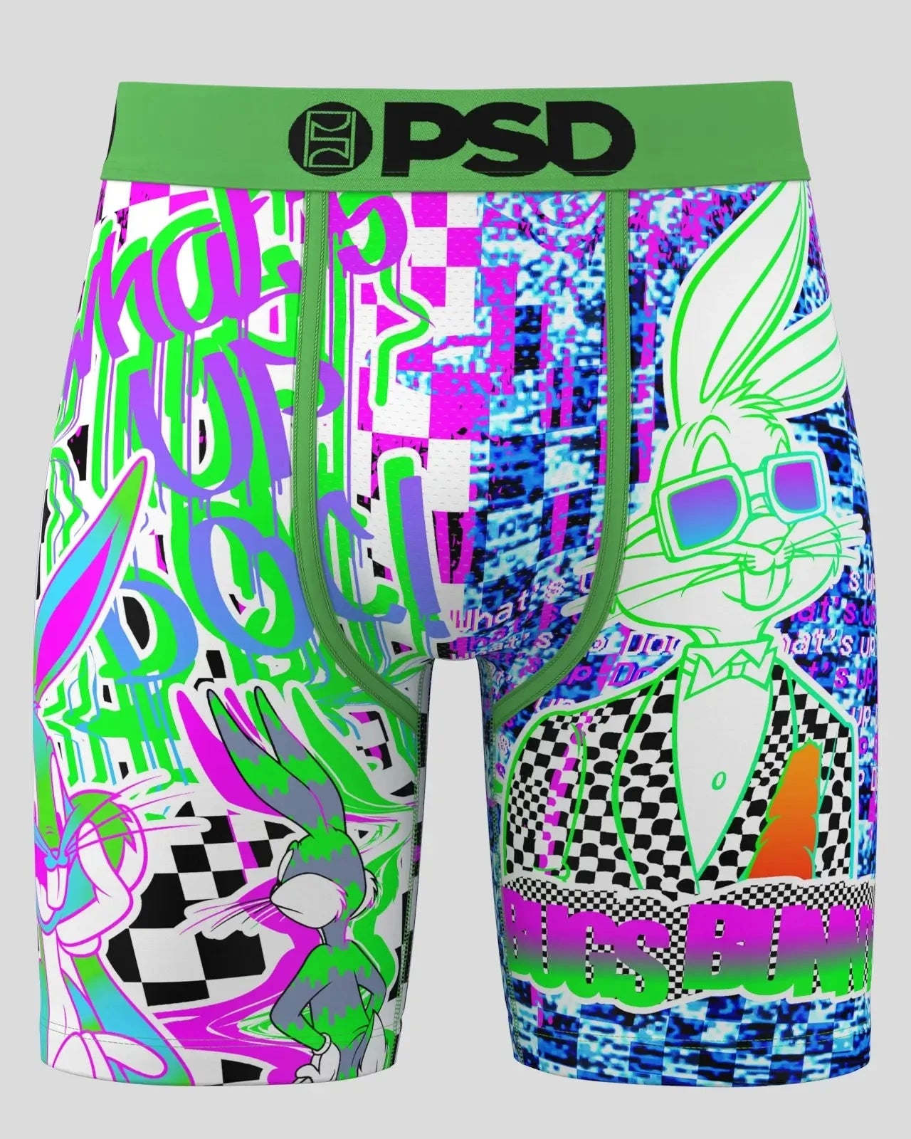 Bugs goes digital with this pair from Looney Tunes x PSD. The Bugs Glitch briefs include our ultra-comfortable Signature WaistBand. a breathable MicroMesh pouch. and four-way stretch. The PSD 7 Standard Length Briefs won’t roll or ride and were built for everything. from everyday wear to your toughest workouts.