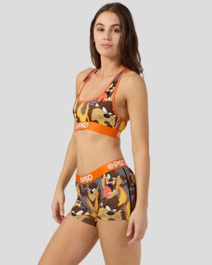 Taz gets a glow-up with this new pair from Looney Tunes x PSD. The Taz Bling Sports Bra is made from a silky poly blend and is breathable yet slightly compressive. bringing you the comfort and support you need for everything you get into.