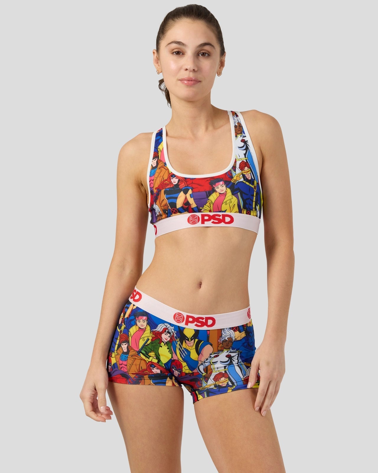 The Squad Sports Bra features members of the X-Men assembled in an all-over print that includes. Made with our silky poly blend. the Sports Bra is breathable yet slightly compressive. bringing you the comfort and support you need for everything you get into.