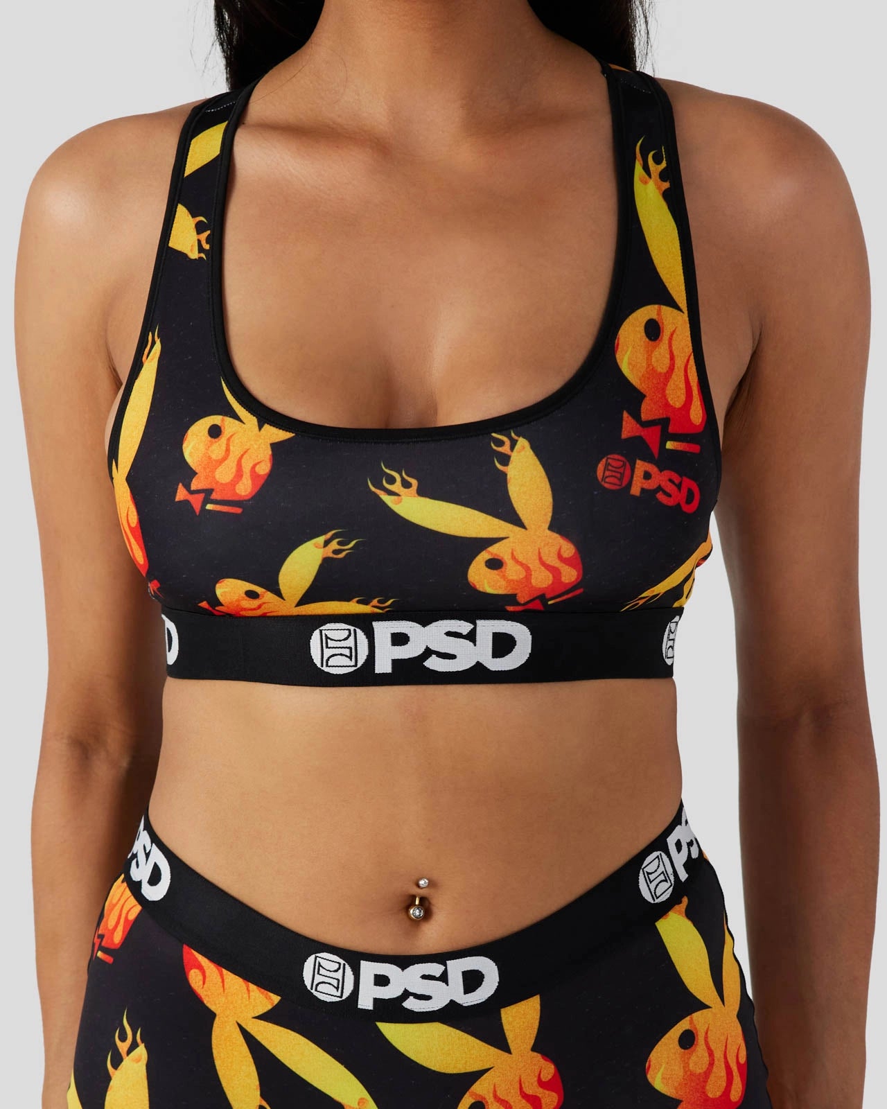 The latest drop from Playboy x PSD is here. Featuring the iconic Playboy bunnies on fire. the Flames Sports Bra is made with our silky poly blend and is breathable yet slightly compressive. bringing you the comfort and support you need for everything you get into. This style is available in sizes XS – 5XL.