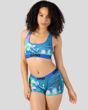 Step into another dimension with Rick & Morty x PSD. The Portal Haze Sports Bra is made from a silky poly blend and is breathable yet slightly compressive. bringing you the comfort and support you need for everything you get into.