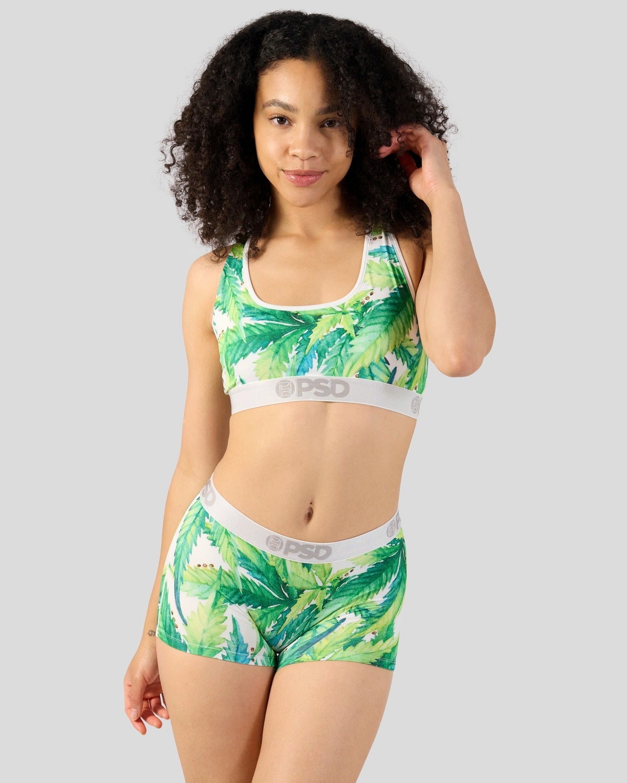 Stay lit in this greens-printed women’s bra. The Seeds and Stems Sports Bra is made from a silky poly blend and is breathable yet slightly compressive. bringing you the comfort and support you need for everything you get into.