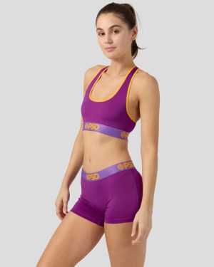 It’s time to liven up your solids with this brand-new color-blocked hue. Plum Pop. Made from a silky poly blend. the PSD Sports Bra is breathable yet slightly compressive. bringing you the comfort and support you need for everything you get into.