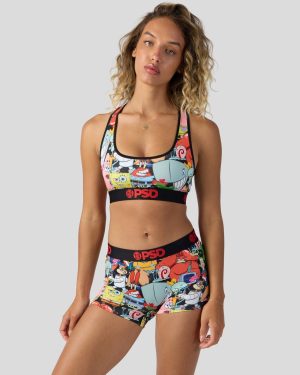 The Squad Sports Bra from SpongeBob SquarePants x PSD is made from a silky poly blend and is breathable yet slightly compressive. bringing you the comfort and support you need for everything you get into.